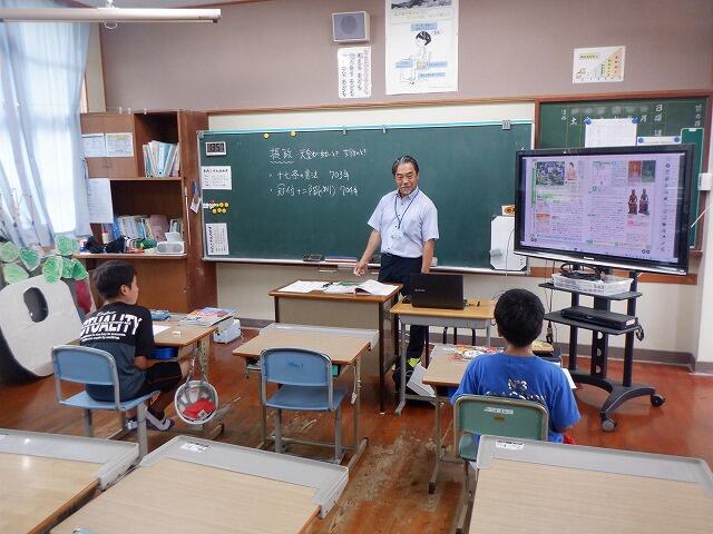 令和6年度の都城市小中一貫教育の西岳・夏尾ブロック(西岳中、西岳小、吉之元小、夏尾中、夏尾小)では、小中一貫教育の取組として、小中連携の交流授業を計画しています。今回、西岳中の社会科担当、出口教諭による交流授業を本校で実施しました。