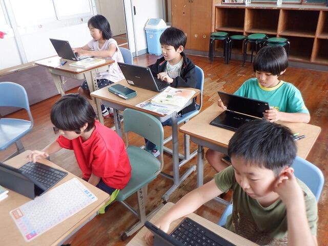 チャットでは、他の児童の考えをすぐ見ることができるので、「発表する時間」「発表を聞く時間」を省略することができます。省略できた時間で考える時間が十分に確保できるので、子どもたちは、自分の考えを打ち込んだ後、他の児童の考えを読み、さらにまた、自分の考えを打ち込んでいくので、たくさんの考えを引き出すことができます。授業の中では、児童の考えが次々に画面に表示されていきます。キーボードを使って入力する速度も速いです。