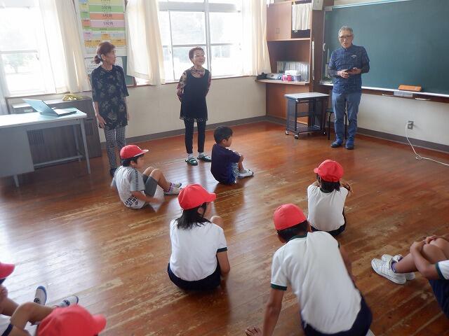 三味線の体験には、代表で6大馳さんが参加しました。上手に演奏できたそうです。1時間ぐらいの公演でしたが子どもたちにとっては、貴重な体験になったようです。