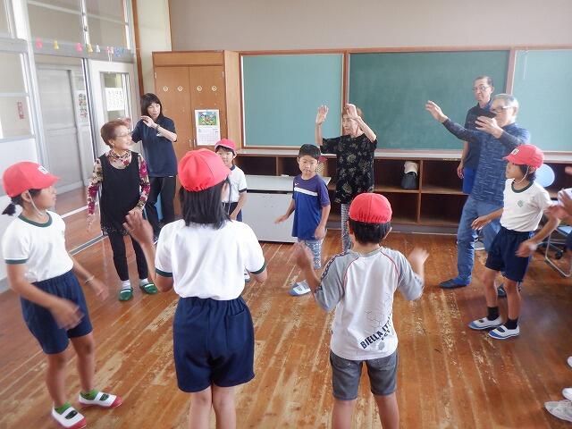 9月15日(日)に開催する吉之元小スポーツフェスタで踊る「吉之元音頭」の練習を行いました。小学生は、初めて踊るので講師として、西岳地区高齢者クラブ会長の篠田健一さん、赤水富士子さん、柳 ヨシ子さんの3名に来ていただきました。