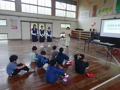 4月23日(木)交通安全協会の指導員の方達から、交通安全について安全な歩行の仕方や、自転車に乗る時の注意点など、たくさんの事を教えていただきました。