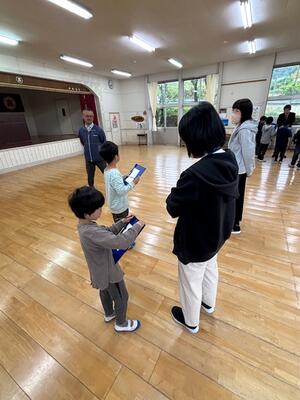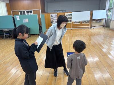 子どもたちはドキドキわくわくしながら、先生方に話しかけ、好きな色、食べ物や好きな花の名前などそれぞれ聞き出し、楽しく触れ合いの時間を過ごしました。
