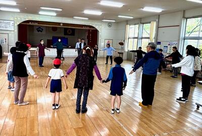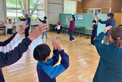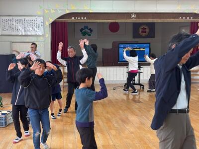 5月7日(水)体育の時間に、地域の方達と吉之元町音頭の練習1回目を行いました。11日(日)にはスポーツフェスタがあり、そこで吉之元町音頭を披露するための練習です。子どもたちと共に楽しく輪を作って踊りました。