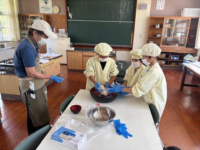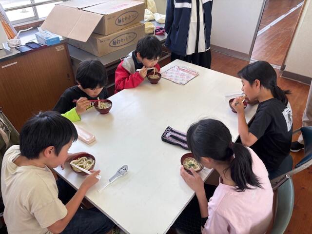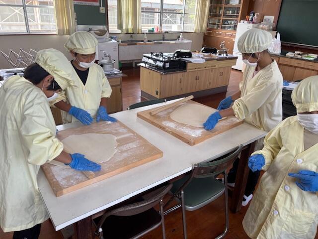 5月14日(水)4,5年生では、家庭科の時間にうどん作りを行いました。うどん粉をよく揉んで練るところからはじめ、麺を同じ太さになるように切っていきます。最後はいりこと鰹節で本格的なだしを作り、美味しいうどんが完成。最後は下級生も招待し、みんなで美味しくいただきました!
