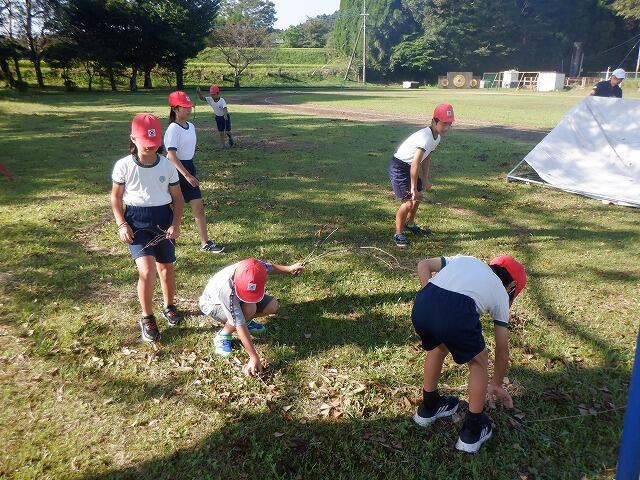 子どもたちが枝拾いをしている間に運動会用のテントを設営しました。