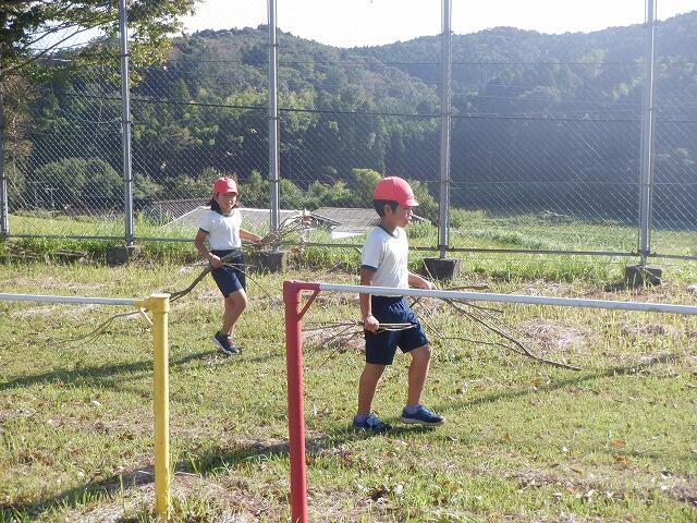 朝の活動の時間に台風によって運動場に落ちた枝を拾いました。大きな枝などはありませんでしたが、小さな枝がたくさん落ちていました。