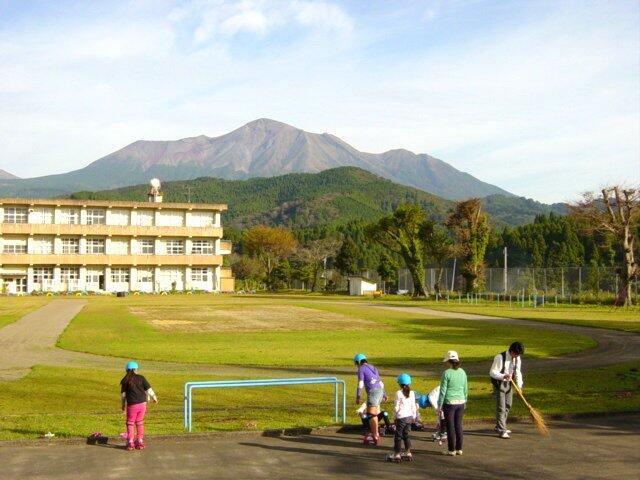 スケート場には、落ち葉や小石・火山灰などがあり、清掃も行いました。