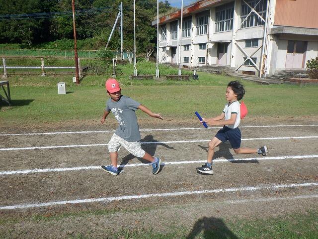 児童の種目の最後は、全員リレーです。9名の児童がバトンを繋いで記録に挑戦しました。練習で出した記録を上回って、ゴールすることができました。全員大喜びでした。