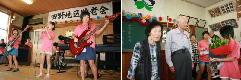 地域の老人ホーム「長遊園」で行われた敬老会にお招きをいただき、ダンスやバンド演奏を見ていただきました。