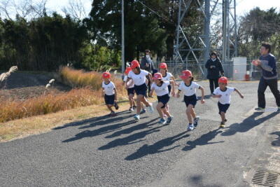 学校の西側の少し上の地域の道路を使って持久走大会を行いました。