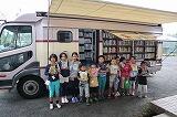 定期的に、移動図書館「クレヨン号」が来ます。この「クレヨン号」が新しい車にリニューアルされるということで、この「クレヨン号」での来校は最後となりました。みんなで記念写真を撮りました。