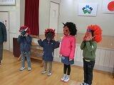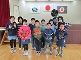 あらかじめ、1・2・5・6年生は自分がかぶる鬼の面を作っておきました。とてもしっかりした鬼の面ができていて、びっくりです。とてもにぎやかな豆まきとなりました。