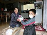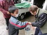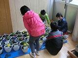 2月15日(金)午後、折田代地区や田野地区の、高齢者の方々のお宅67軒を、子どもたちと民生委員さん、公民館長さんで分担して訪問し、パンジーの花を届けました。