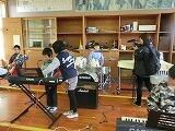 離任式後に、児童全員と一緒に楽しくバンド演奏をしました。思い出に残る離任の日となったと思います。