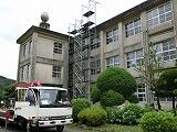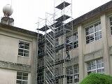 7月4日(木)、工事のために校舎の屋根・屋上まで上がるための足場が、職員室北側に組まれました。工事期間は8月いっぱいの予定です。