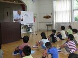 その後は、虫博士(昨年度までいらっしゃった谷口先生に、虫博士として講話に来ていただきました。)のお話を聞き、ヘラクレスオオカブトなどの生きた実物も見たり触ったりしました。子どもたちはみんな大騒ぎです。