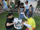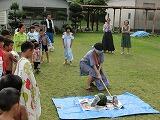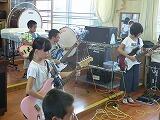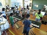 1日目、まずは、プールで楽しく過ごし、プールの最後は大人対子どもの対抗リレーで勝負。スイカ割り、みんなで分担して作ったカレーの夕食の後は、1学期に練習してきたバンド演奏の披露を行いました。