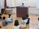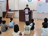 始業式では、2年生男子1名が、これまでの反省や2学期に取り組みたいこと等の発表をしました。2学期に取り組みたいことは4つ。「・一輪車を頑張ること。・文字を丁寧に書くようにすること。・姿勢をよくするように気をつけること。・みんなの前で自信をもって堂々と発表できるようになること。」です。終わりには、自分の名前の一文字ずつに当てはめながら、しっかりと楽しく発表ができました。大変すばらしかったです。