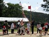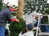 万国旗を結ぶ高い柱も、取り付けられました。万国旗の飾り付けは、風等を考慮して、明日の朝に取り付けられることになりました。