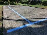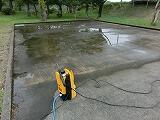 掃除は、高圧洗浄機でリンク一面をきれいに洗い流しました。その後、リンクが乾いた後、滑走する目安のラインを引いたり、中央部分を中心にペンキを塗ったりしました。