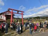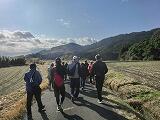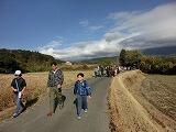 12月1日(日)午前中に、西岳地区まちづくり協議会主催事業として「ウオーキング大会」が行われました。吉之元の折田代農村広場から吉之元小学校までを折り返す約6kmのコースです。約80名の参加者で、吉之元小学校の児童も2名参加しました。雨の予報の心配をよそに、とってもすばらしい良い天気になり、途中、荒武神社や明観寺跡等の史跡を巡りながら、約2時間の楽しいウオーキングとなりました。ゴールの折田代地区公民館ではぜんざいの振る舞いもあり、みなうれしそうに、おいしくいただいていました。