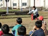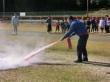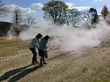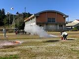 運動場に避難し、火災に対する対応等の指導を行った後で、実際に消火器を使った消火訓練も行いました。