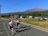 吉之元小学校の西側高台の道路を、1年生は1000m、2~6年生は1200m走ります。山々を仰ぎ見ながら子どもたちが駆ける姿は、とってもすがすがしそうです。
