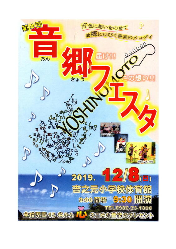 12月8日(日)は、吉之元小学校の「音郷フェスタ」(学習発表会)の日です。