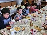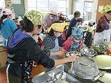 1月7日(火)、今日から3学期が始まりました。今日は給食が無いため、全校児童と先生方で食育学習を兼ねて昼食作りを行い、お昼をみんなでいただきました。