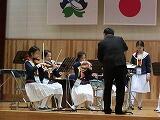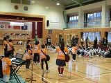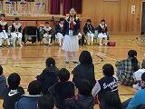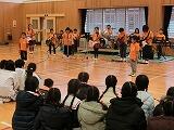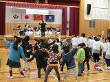 西岳小学校の体育館において、西岳小学校と吉之元小学校で出迎え、それぞれ和太鼓演奏、バンド演奏を行い歓迎しました。敦化小学校はバイオリン等のクラシック音楽の演奏を聴かせてくれました。交流を通して、音楽には国境は無いということを子どもたちも実感していました。敦化小学校の「パプリカ」の演奏では、西岳・吉之元小学校の子どもたちも、演奏に合わせてダンスをして、楽しい時間となりました。