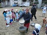 今年度の田植え(5/31)、稲刈り・掛け干し(10/4)、稲落とし(10/16)、の一連の作業の総まとめ、いよいよ「餅つき」です。