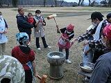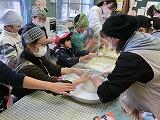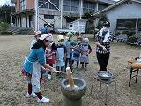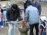 1月22日(水)、保護者の皆さんの協力により、餅つきをすることができました。本年度収穫し、音郷フェスタで来場された方々に配付した餅米の残りの約10kgを使用して行いました。石臼と杵を使って、児童全員と来校された保護者の皆さんで順番に餅つきをします。児童からは、「杵が重くて大変。」「つくのが難しい。」の声もありましたが、「去年より上手にできた。」「楽しかった。」などの声もありました。杵を振り下ろす度に、「よいしょ。」のかけ声がかかり、和気あいあいとした中で、楽しく餅つきができました。ついたお餅はみんなで丸めましたが、約300個ほどできあがりました。4回餅つきを行いましたが、一番最後についたお餅を、みんなで食べました。とてもおいしそうな顔です。そして、「自分たちでついて丸めたお餅は、とってもおいしいです。」「これまでに多くの人が手伝ってくださったので、こんなにおいしいお餅ができたのだと思います。」などの発表がありました。丸めたお餅は、保護者の方々や田植え等でお世話になった方々に配りました。