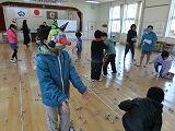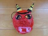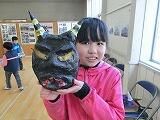 「心の鬼を追い出そう。」と、児童一人一人の手作りの鬼の面をそれぞれがかぶり、豆まきをしました。