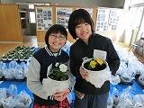 2月13日(木)午後、折田代地区や田野地区の高齢者の方々のお宅を、子どもたちと民生委員さん、公民館長さんで分担して訪問し、パンジーの花を届けました。折田代地区2コース、田野地区2コースに分かれ、計77軒を訪問しました。元気よく、また、やさしく挨拶したり声掛けしたりする子どもたちに、高齢者の方々も思わずにっこり。鉢には、子どもたちが書いたメッセージカードも付けましたが、うれしそうに花の鉢を受け取っていただけました。