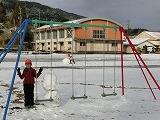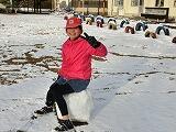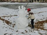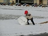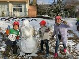 ※ 昨日作った雪だるまが、運動場に頑張って残っています。