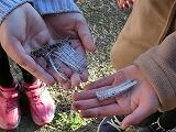 「先生、霜柱がすごいです!」 急いで見てみると、6~7cmのとても長い霜柱がありました。今朝の最低気温は-2℃で、昨日の雪景色の時よりも低い温度でした。