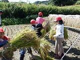 みんなで協力して、稲を束ねて、かけ稲をしました。