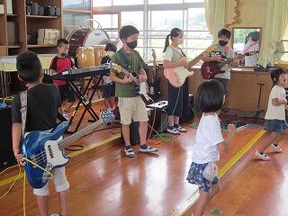 吉之元小学校では、児童全員でのバンド活動を平成28年度から始めました。この伝統を受け継ごうと本年度もバンドん けこをやっています。1年生から6年生全員で力を合わせながら一生懸命、歌を歌って、ギターやキーボードを弾いて、ドラムを叩いています。元気な踊り手もいます。コロナにゃぁ 絶対 け負けんごっ、いっしょけんめ、歌方、弾っ方、叩っ方でした。保護者や地域の皆さん、バンド活動発表の時を 楽すんに しちょったもんせぇ。