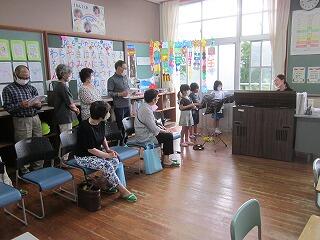 1年生3人は毎日元気なあいさつをしに校長室までやってきます。そして「五十音」の暗記を披露しています。4月当初は、「あいうえお」「あかさたな」はもちろんですが、あいさつも自信なさげでした。「おはようございます。」と言ってほしくて、こちらから「お」と言うと「おーこーそーとーのー」とあいさつそっちのけになることが何回もあったほどでした。しかし、今では元気な声で明るくあいさつします。自分からです。そして、3人ともしっかりと「五十音」も暗記できています。最後は「失礼しましたぁ」と言える礼儀正しい1年生の成長の早さに大きな喜びを感じています。3人ともおせろしゅないもした。