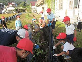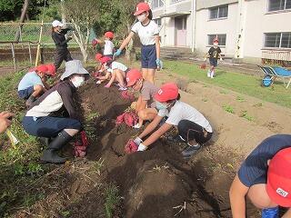 このところ、コロナのために集まりにくい状況が続いて、何か とぜんねー 気分でした。運動会でも地域の方は参加されませんでした。そこで、木曜日は地域の方との 花植え活動を実施しました。14名もの方に集まっていただき、児童と いっしょき 花の苗を植えてもらったところです。さひかぶいの 学校訪問となり、皆さんの嬉しそうな笑顔を見ることができました。学校が賑やかなのは嬉しいことです。ありがとうございました。