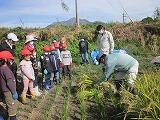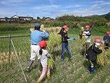 本日稲刈りをしました。もち米の刈り取りと掛け干しです。これから先、取り入れと脱穀があります。最後には、みんなで盛大に ぼっつっ (餅つき)ができる日が来ることを切に願っています。