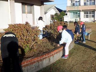 11月も後半になり、今朝のみやこんじょ地域は気温3℃まで下がりました。しかし、児童はみんな元気で、手がつんてーと言いながらも草取り作業をしたとこです。