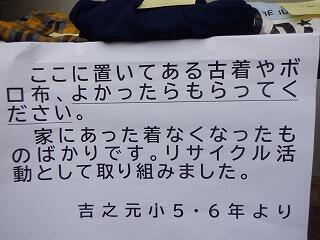 あさっての11/20(日)吉之元フェスタに是非来てください。そして、賑やかに応援してください。体育館入り口には5・6年生が用意した古着を並べています。SDGsの取組の一環です。古着と言っても「ぐゎんたれ」ではありません。まだまだ、じっぺ着いがなるモノばっかいです。中には新品もありそうです。気にいった洋服があれば、遠慮せんで持っ帰っくいやんせー