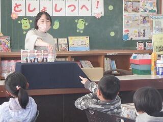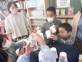 昼休みの図書館サポーター津曲先生による「(語り聞かせ)かさこ地蔵」の様子です。手作りの地蔵、傘、雪などの登場する紙コップシアターに、児童は、いつもよか興味深げで大喜びでした。お陰様で、お爺さんお婆さんにも優しい豊かな心が芽生えると思います。きっと思いやりのある吉之元っ子が育っていくと思いました。ありがとうございました。