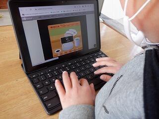 学校ではパソコンを使うときに、仮名文字よかローマ字での入力ができるように学習します。本校でも、ひらがなやカタカナを覚えて間もない1・2年生が、既にローマ字入力を練習しています。これは、50音が基本となる仮名よりアルファベットの数が断然少ないためです。アルファベットは26個しかなく、狭い範囲で指を動かせばヨカからです。そして、こんつ続けて練習すれば手指を見らじ画面ばっかい見ちょっても文字入力可能となります。こげんして上級への登竜門「ブラインドタッチ」がでくいごっなれば、いっちょまえーになれます。