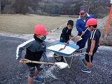 「10年に一度レベル」の強烈な寒波が来ていて、日中既に運動場の水道が凍っ付いてました。明日25日の朝が心配なため、夕方には道路が凍っ付かんごっしてくいやったとこです。凍結防止剤を撒いてくださった谷口勇樹さんに、そして、子どもたちにも深く感謝いたします。ありがとうございました。