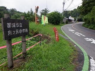 学校下、県道からの入り口の写真です。この標札はコンクリート製の立派なもので、学校名の他、裏には「贈 新生興産株式会社 昭和39年卒業 中満新一」と記銘があります。どこの?だい?でしょうか?その他、建立のいきさつとか当時の様子とか、こまんか事でも構いませんので情報をお寄せください。入り口に新看板を掲げようかと企て中です。創立150周年を期に学校の存在をこれまで以上に世に知らしめたいからです。吉之元小学校は「こきあったっど」と示せるようにしたいのです。