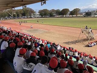 都城市内36校の6年生、およそ1600名が陸上競技場に集結しました。本校からは、村山一心くんが1000mに、藏元弥山くんが50mハードルに出場しました。少々緊張していたようでしたが、他の学校の選手と競い合い、最後まで全力で走り抜きました。炎天下の中で大変でしたが、よくやったと思います。