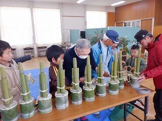 師走に入って今朝も冷え込みましたが、午前中に正月飾りを作りました。地元のお三方(坂ノ上さん、重信さん、篠田さん)には、準備から指導まで丁寧に行っていただいて、心から御礼申し上げます。お陰様で見事な正月飾りが出来上がりました。これで、おめでたい新年が迎えられると、みんな喜んでいます。ありがとうございました。