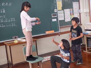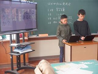12/14(木)全校児童が集合して発表会を実施しました。スライドを使ったり劇にしたりして、全員それぞれが、学習した内容をはしとして発表することができました。
